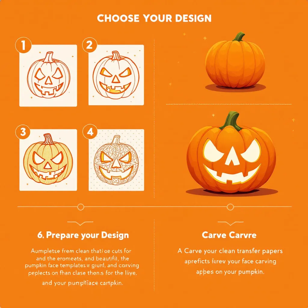 Creating stunning pumpkin faces is easy with our step-by-step guides. Follow these simple steps to carve your perfect jack-o'-lantern:
